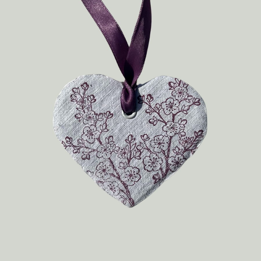 - Van dit hartje zijn meerdere soortgelijke exemplaren op voorraad, allemaal met dezelfde handgestempelde afbeelding. Elke exemplaar is uniek door het handgemaakte karakter.